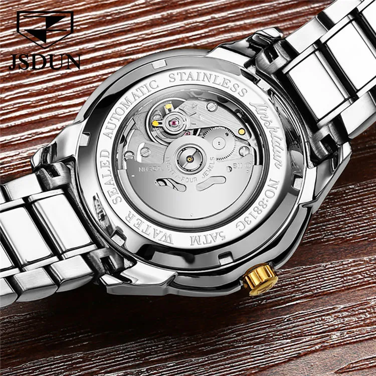 JSDUN 8823 Hot Sell Men Waterproof Original Movement Stainless Steel Dial Diameter 42mm Weight 170g Mechanical Wrist Watch.