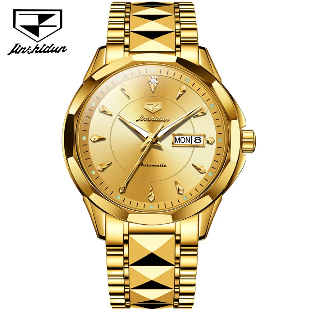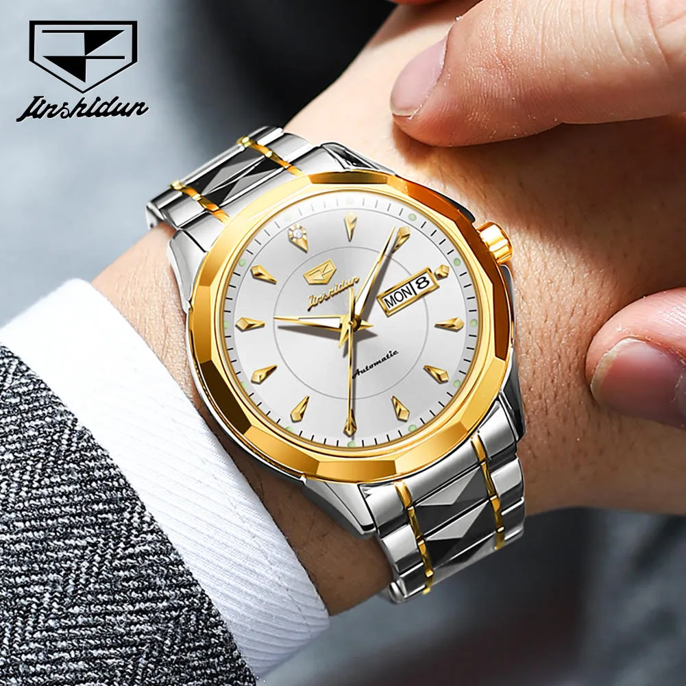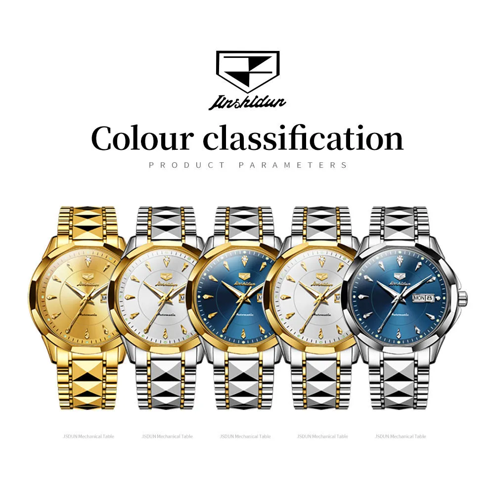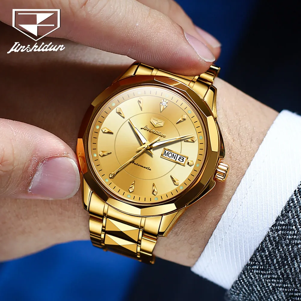JSDUN 8936 Original Mechanical Men’s Watches Waterproof Stainless steel Band Gold Wristwatches Date Automatic Watch For Men Genuine.