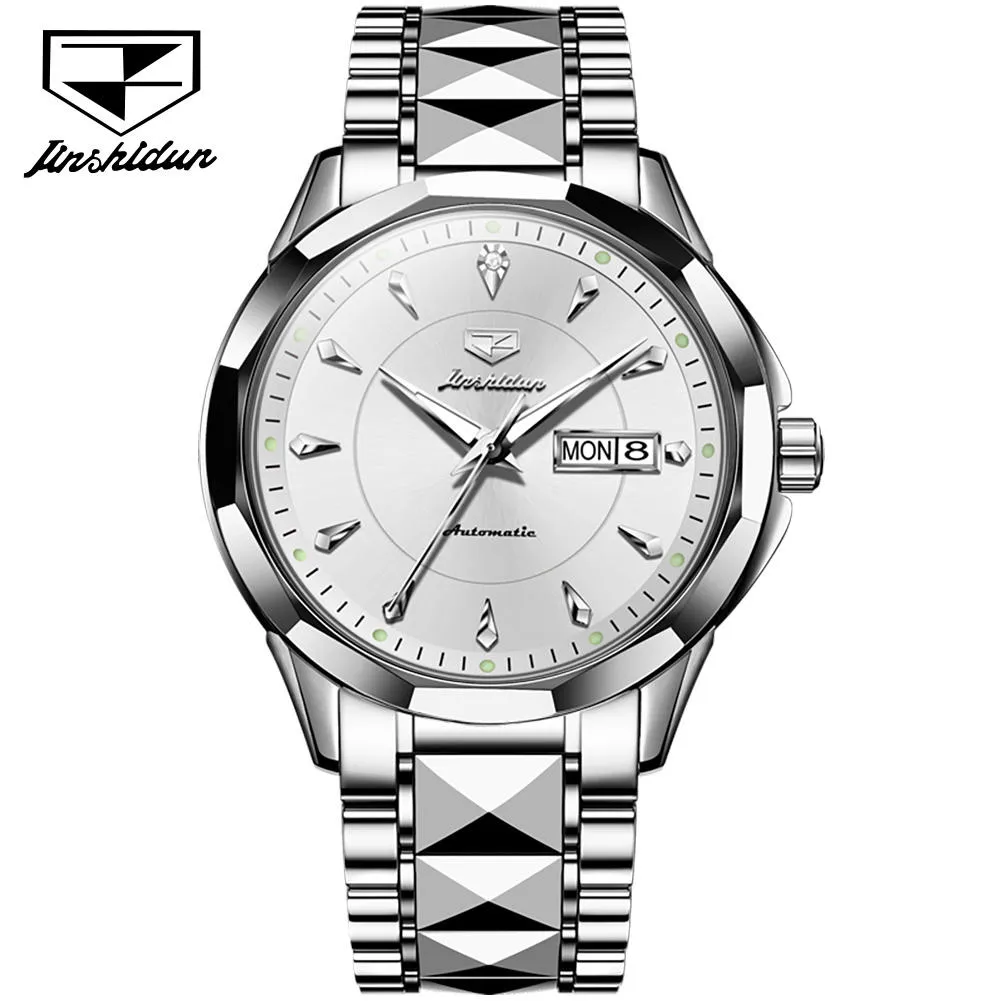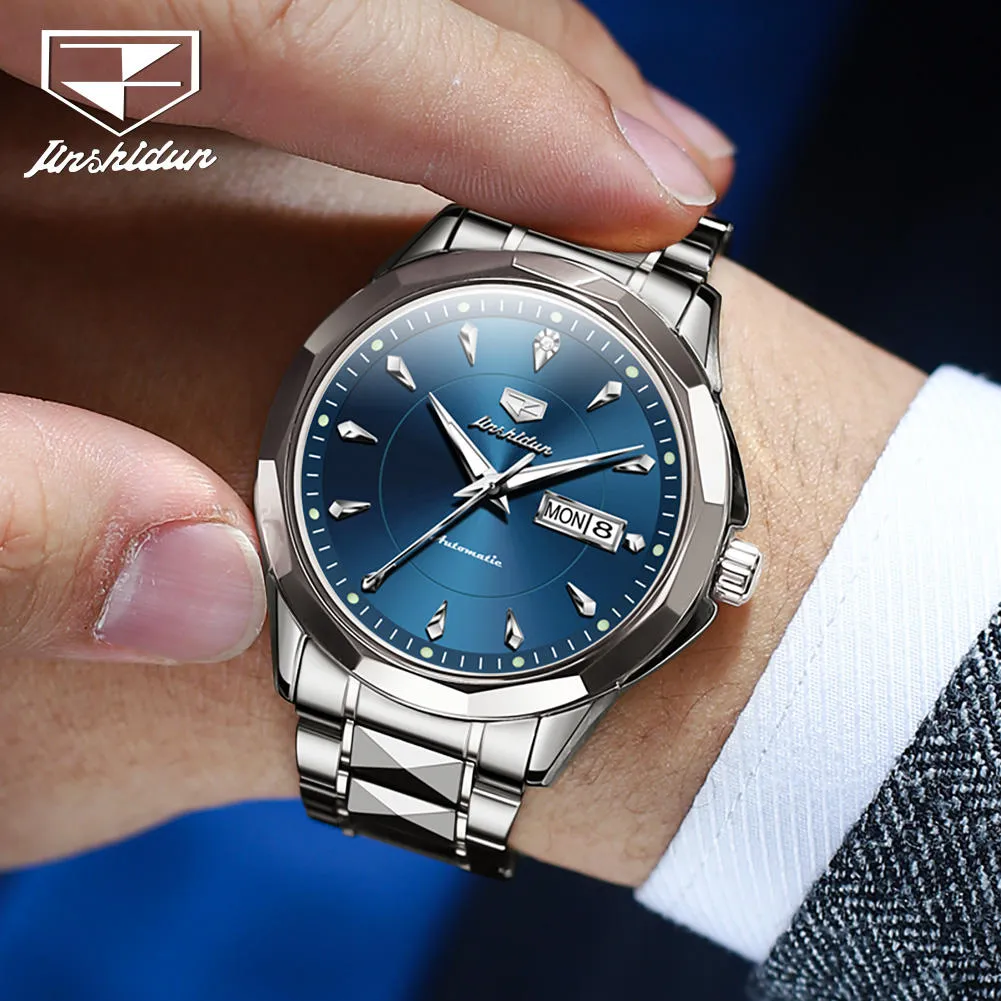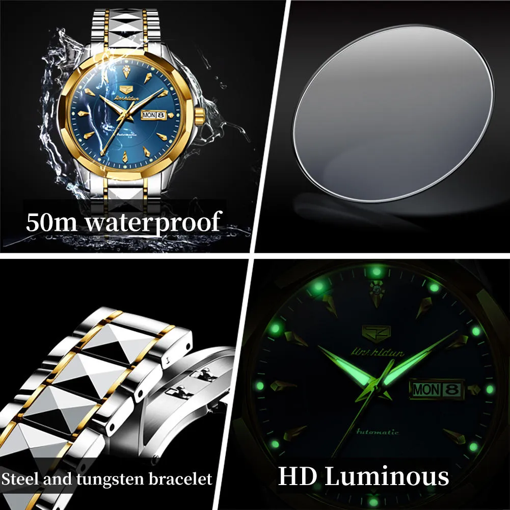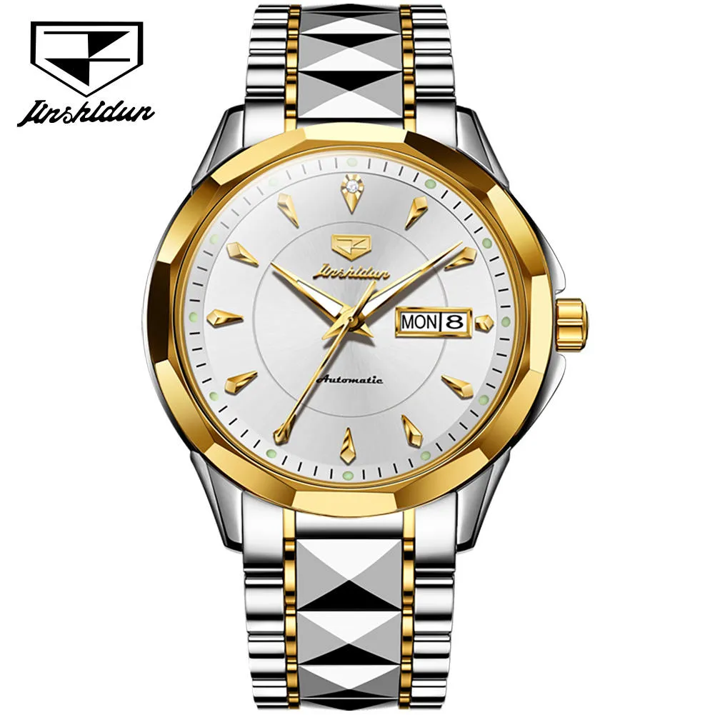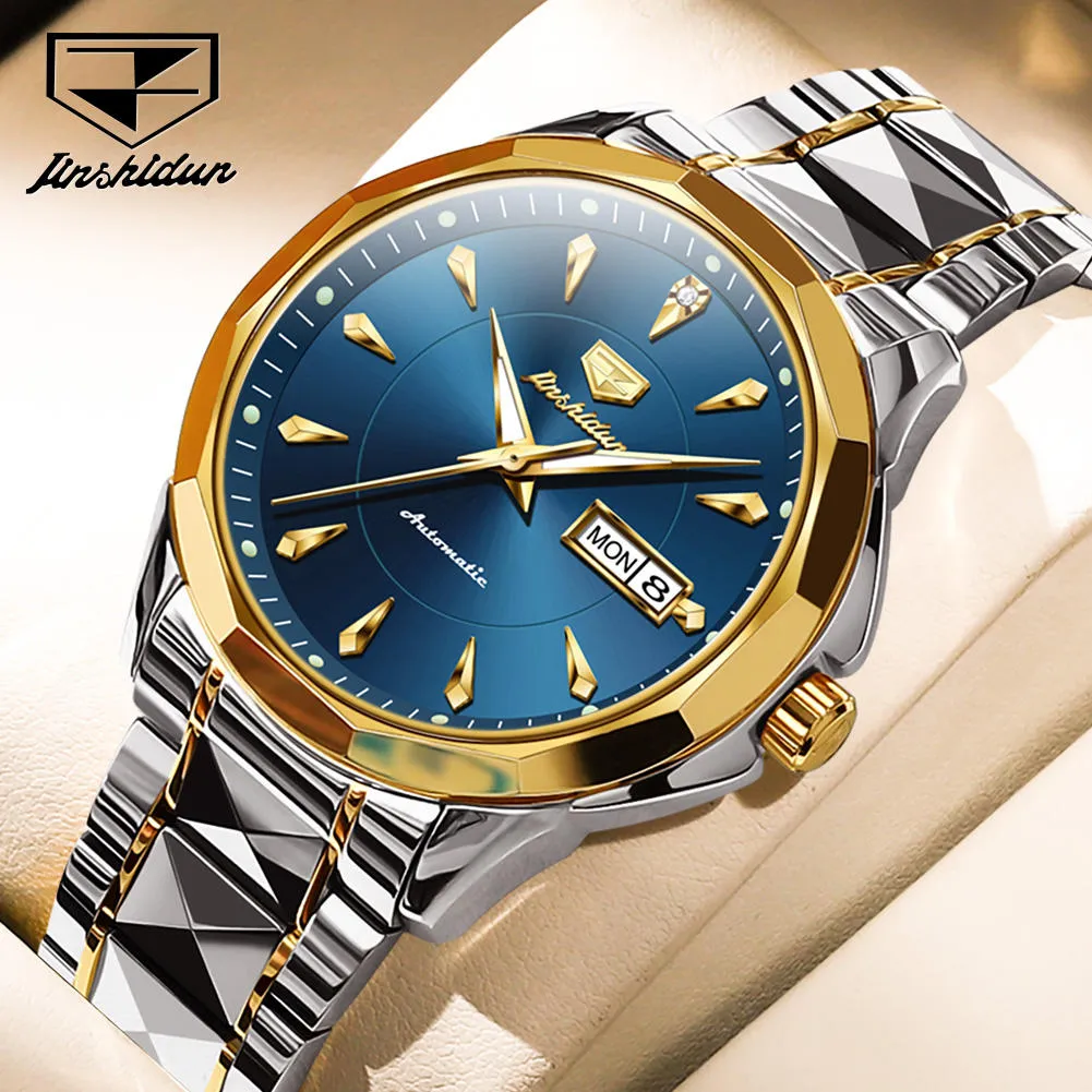 JSDUN 8936 Original Mechanical Men’s Watches Waterproof Stainless steel Band Gold Wristwatches Date Automatic Watch For Men Genuine.