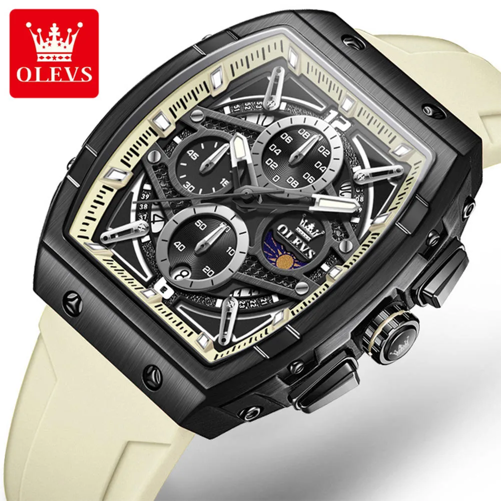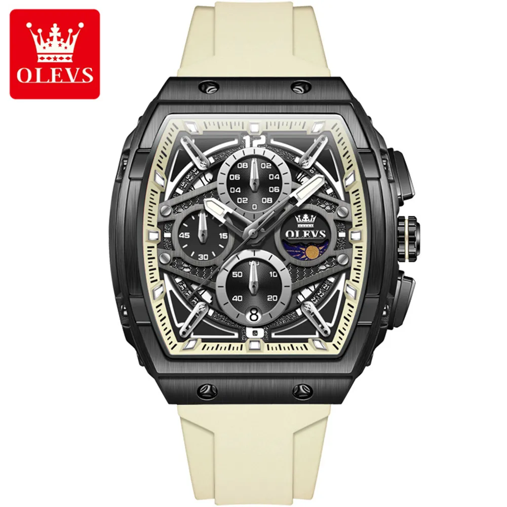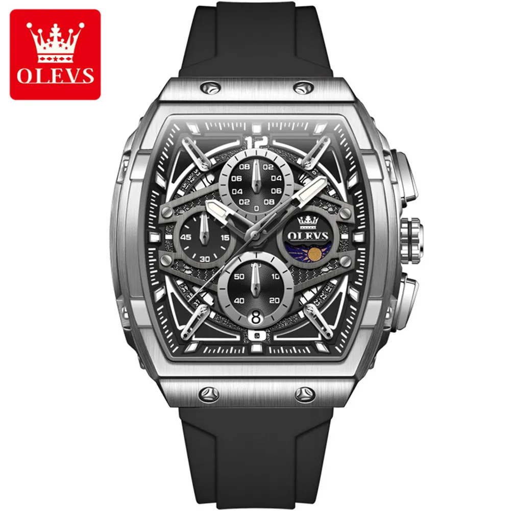 OLEVS 2975 Big Dial Quartz Watch For Men Fashion Chronograph Date Silicone Strap Wristwatch Moon Phase Waterproof Man Watches.