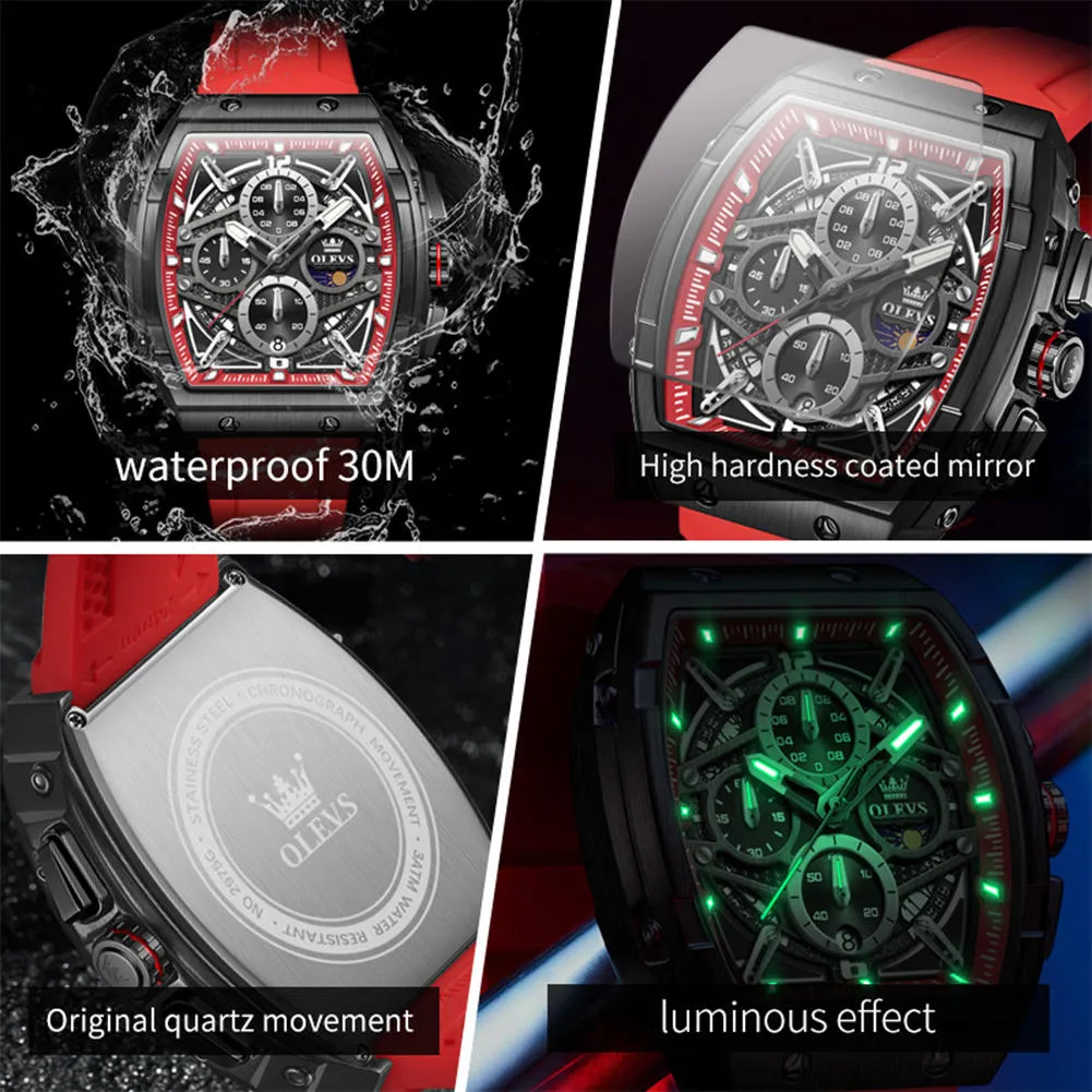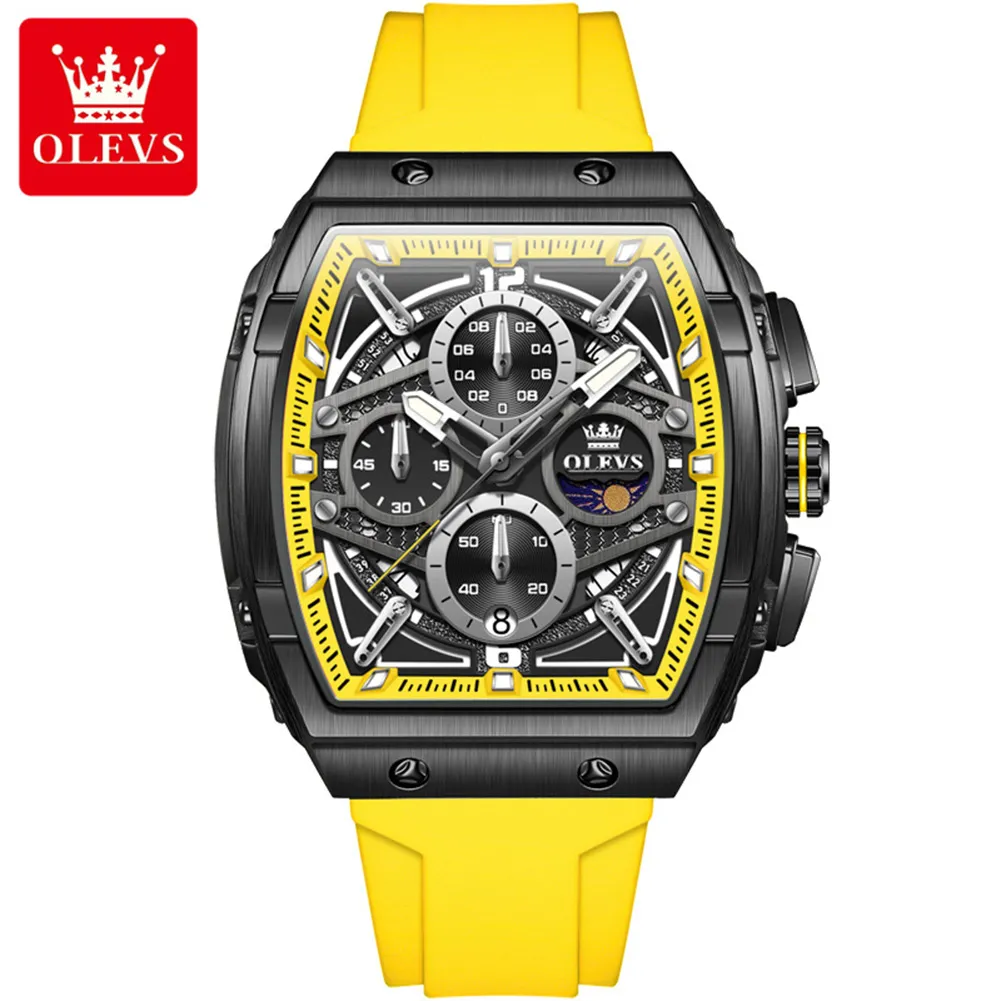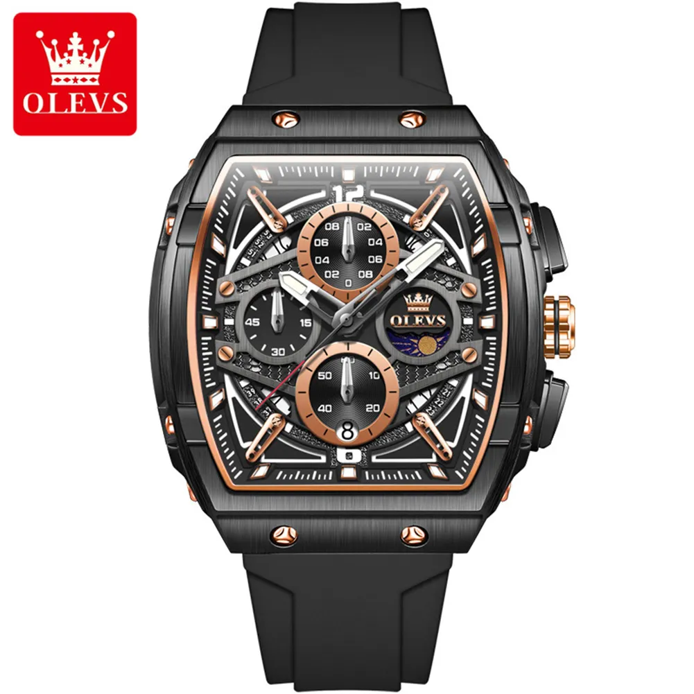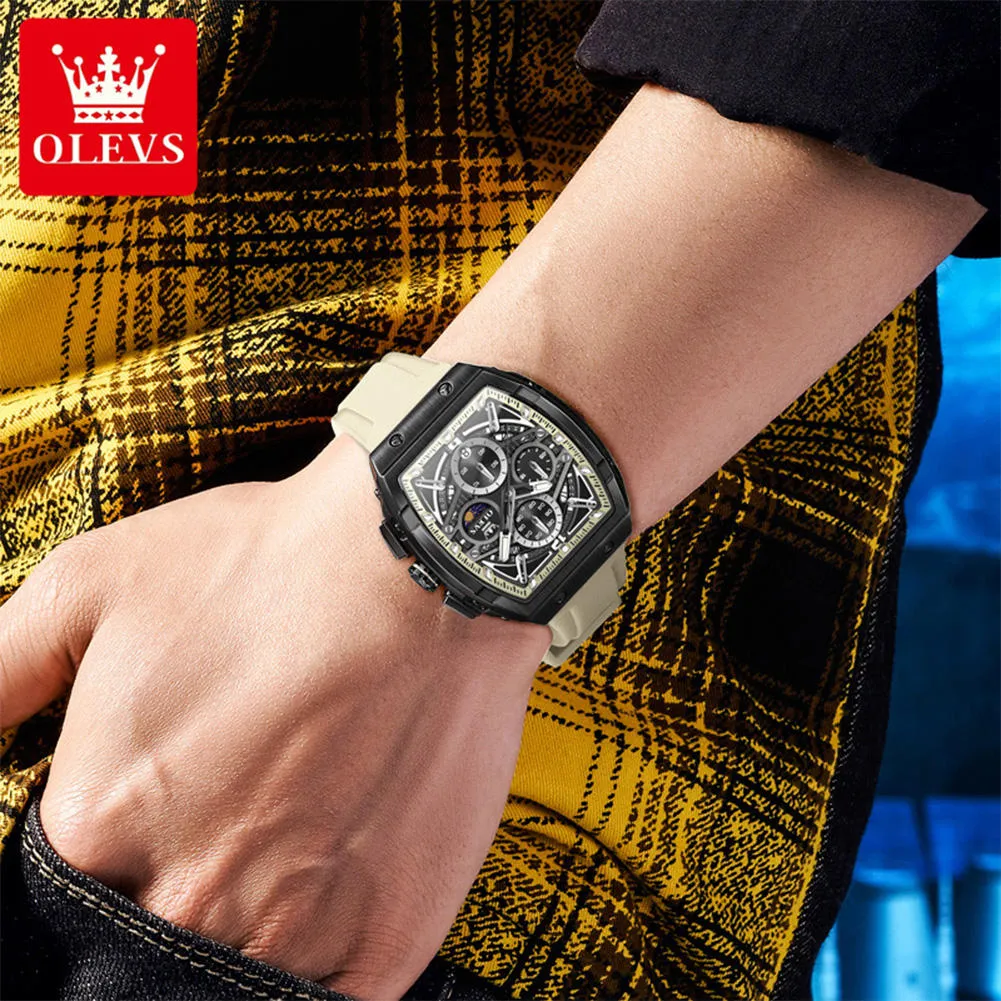 OLEVS 2975 Big Dial Quartz Watch For Men Fashion Chronograph Date Silicone Strap Wristwatch Moon Phase Waterproof Man Watches.