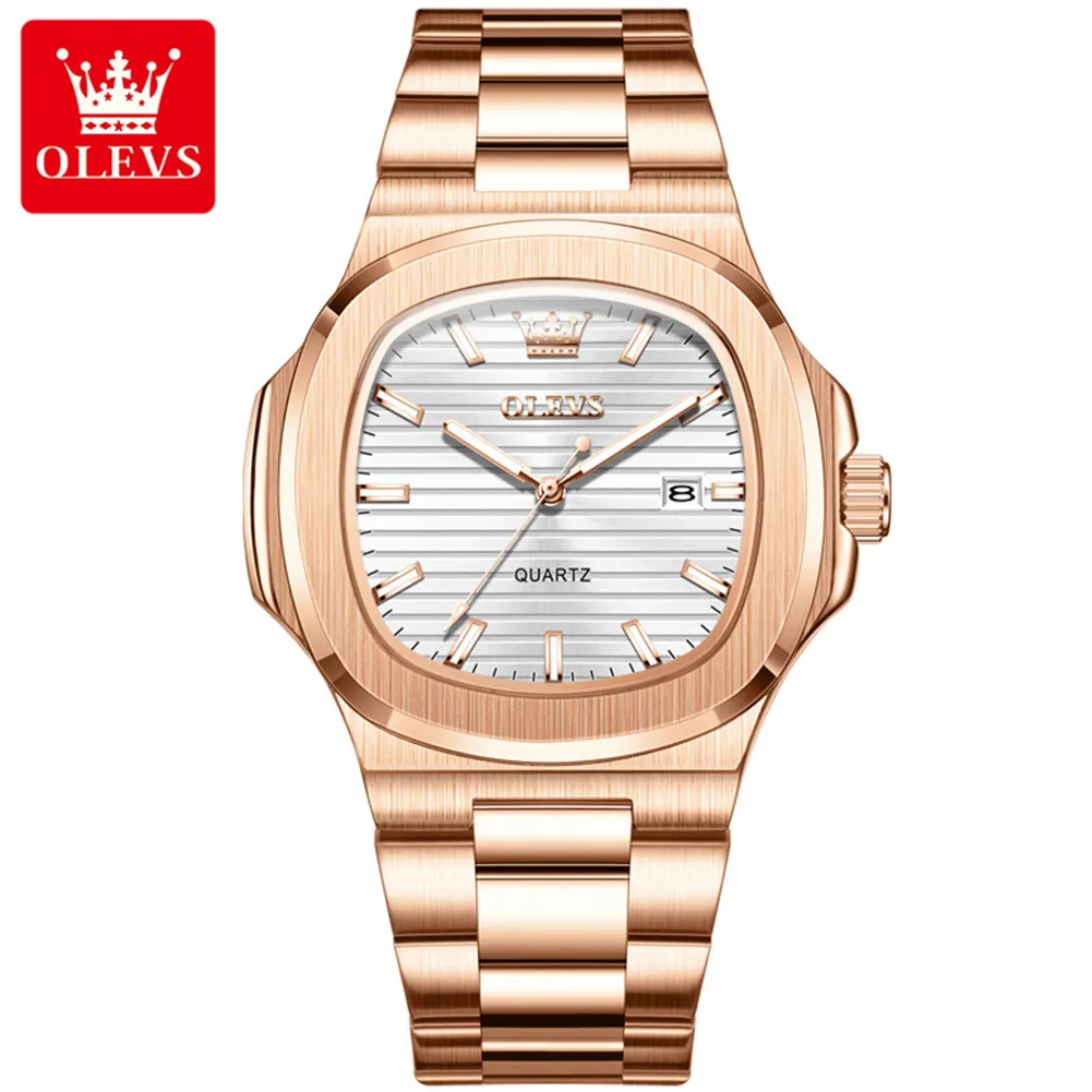 OLEVS New 3696 Luxury Brand Men Watch Fashion Square Nautilus Design Original Quartz Watch for Man Waterproof Calendar Luminous.
