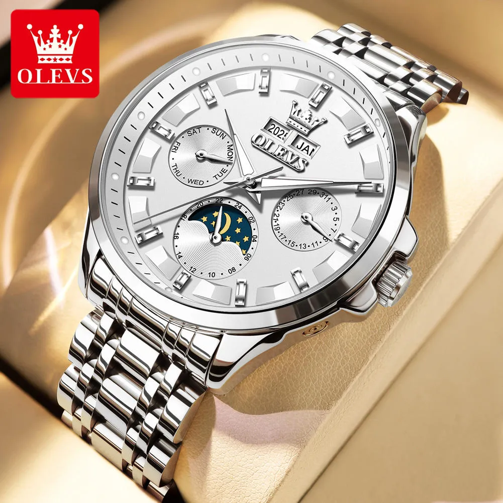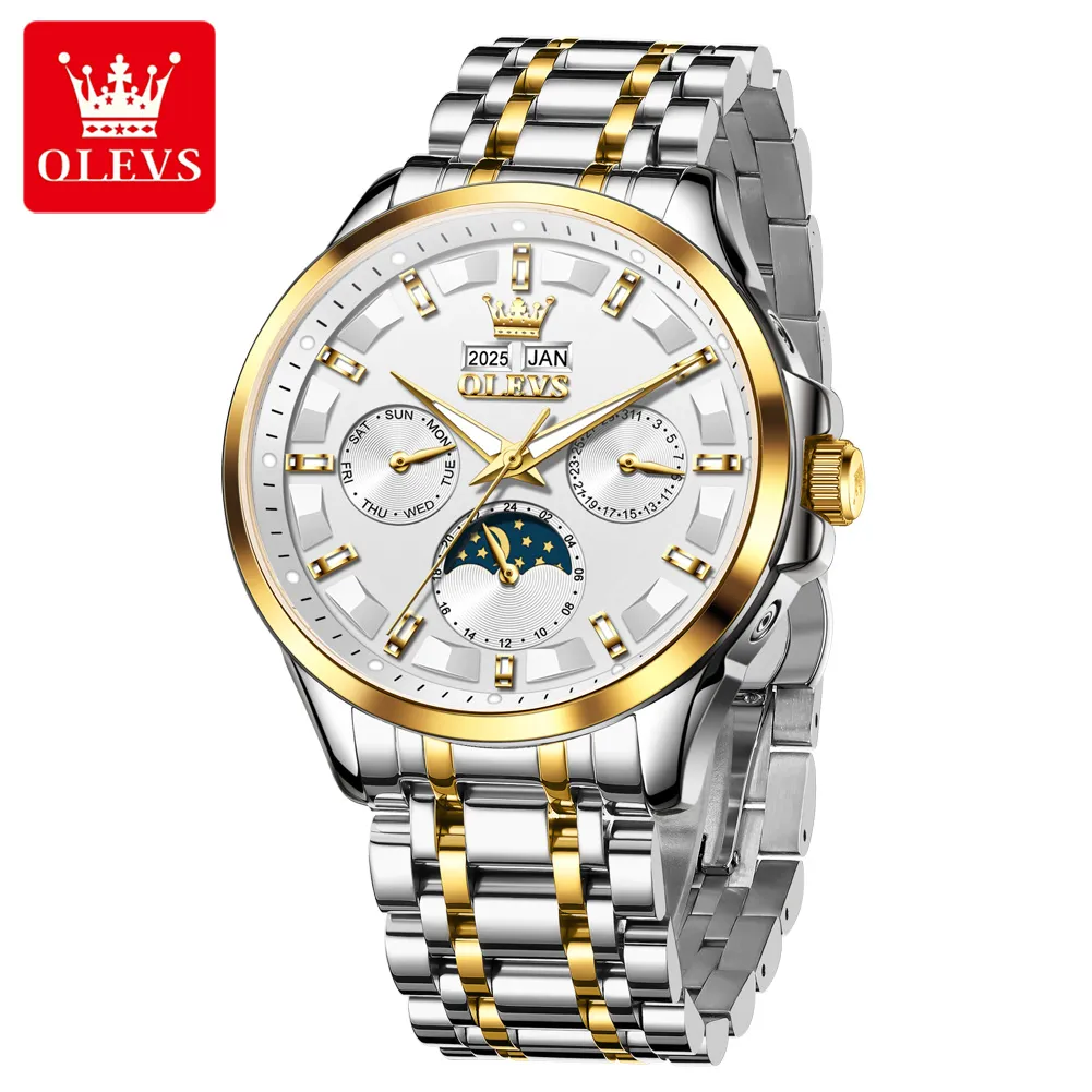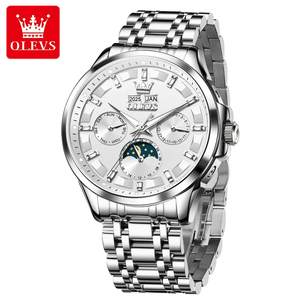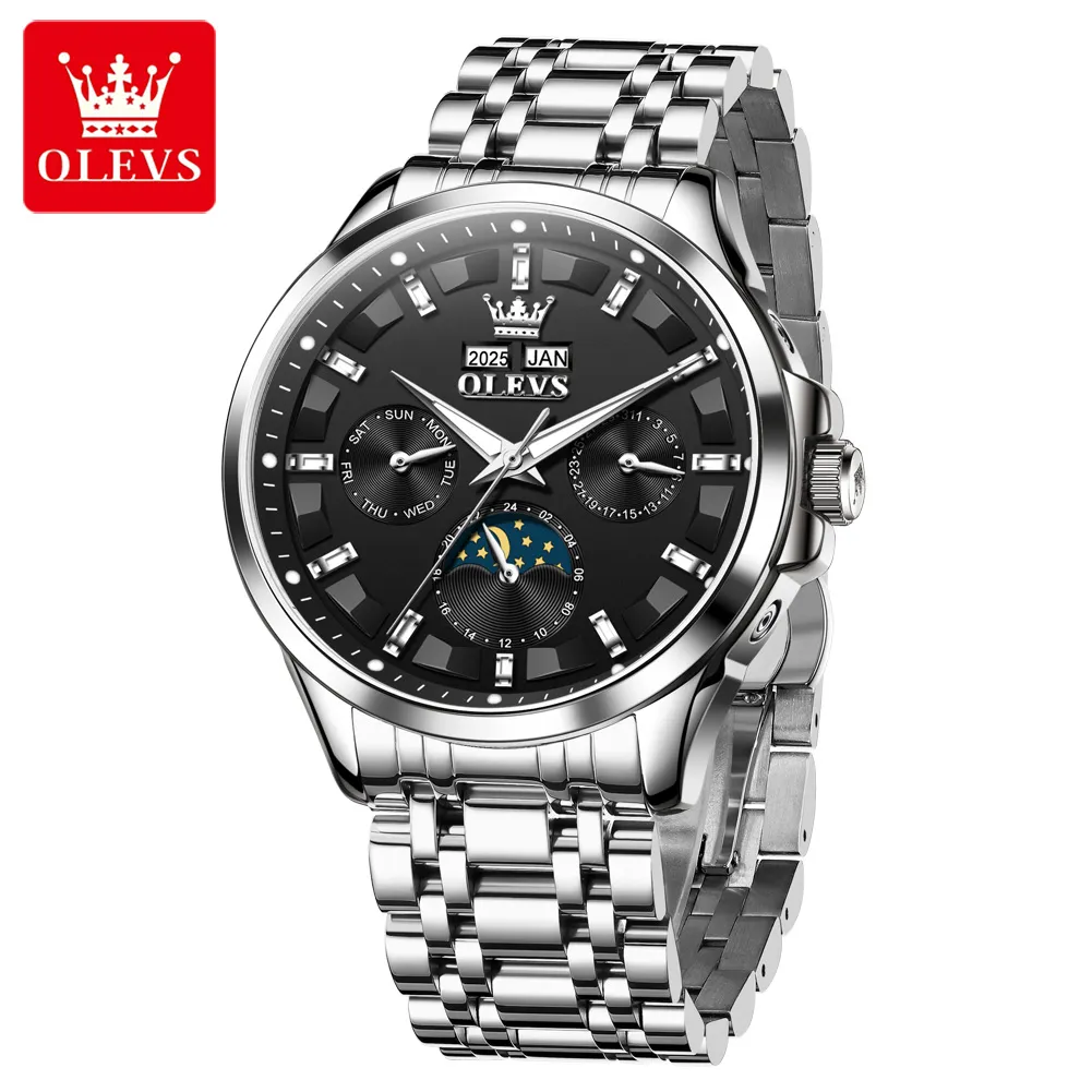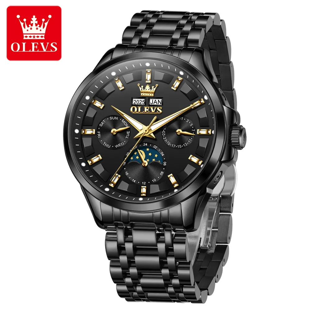 OLEVS 7070 Luxury Men’s Watch Dual Calendar Display Luminous Moon Phase Automatic Mechanical Men’s Wristwatch.