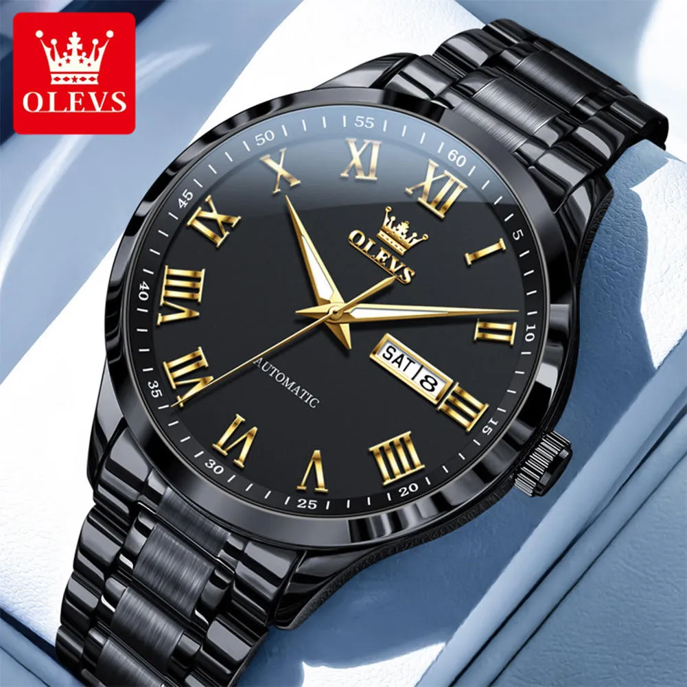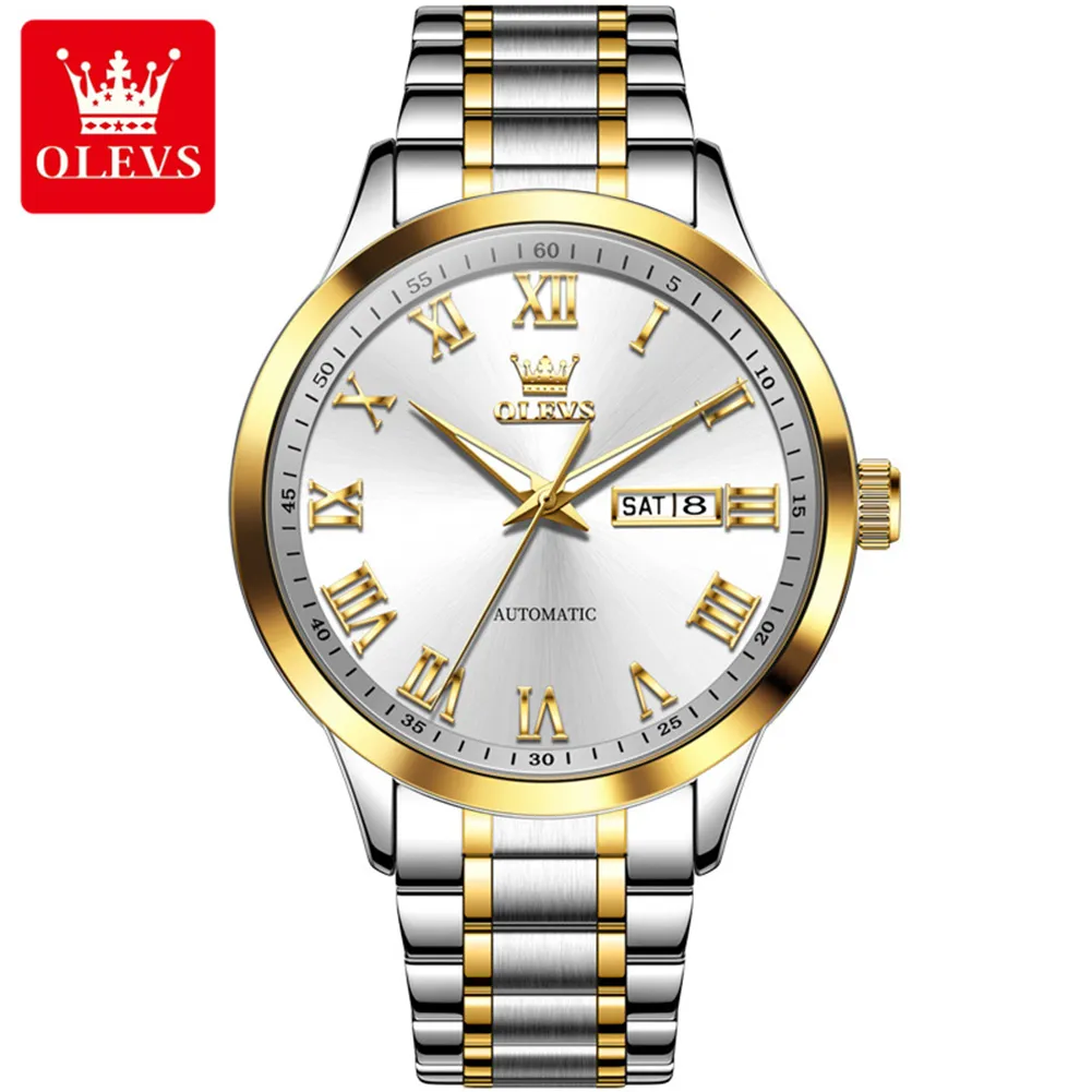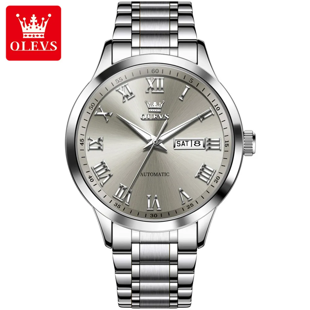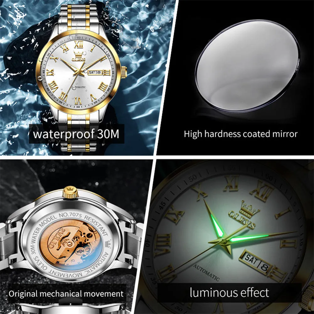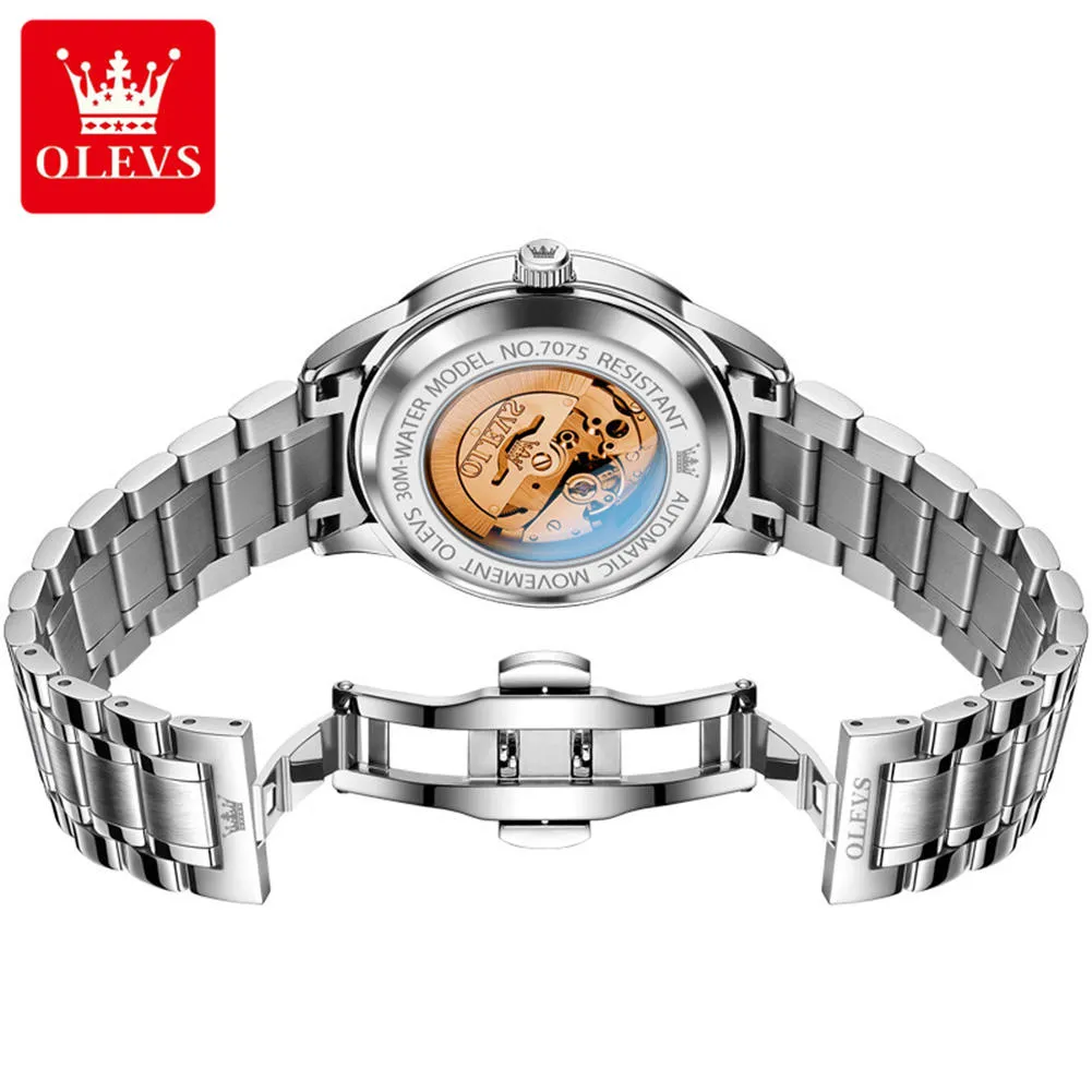 OLEVS 7075 High Quality Classic Diamond Waterproof Luminous Calendar Classic Automatic Mechanical Watch for Man.