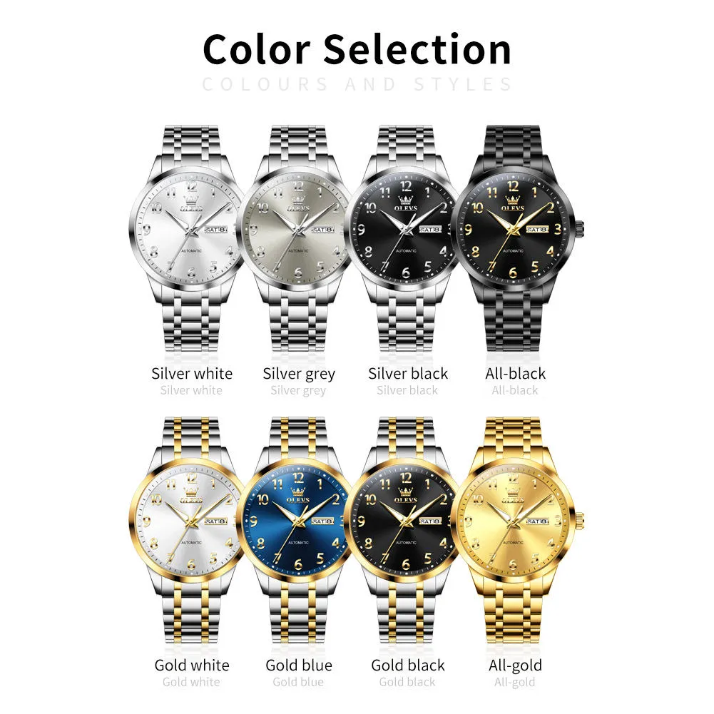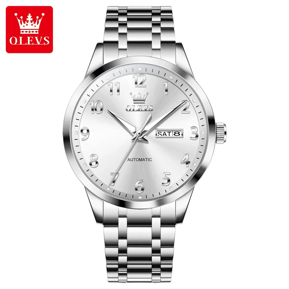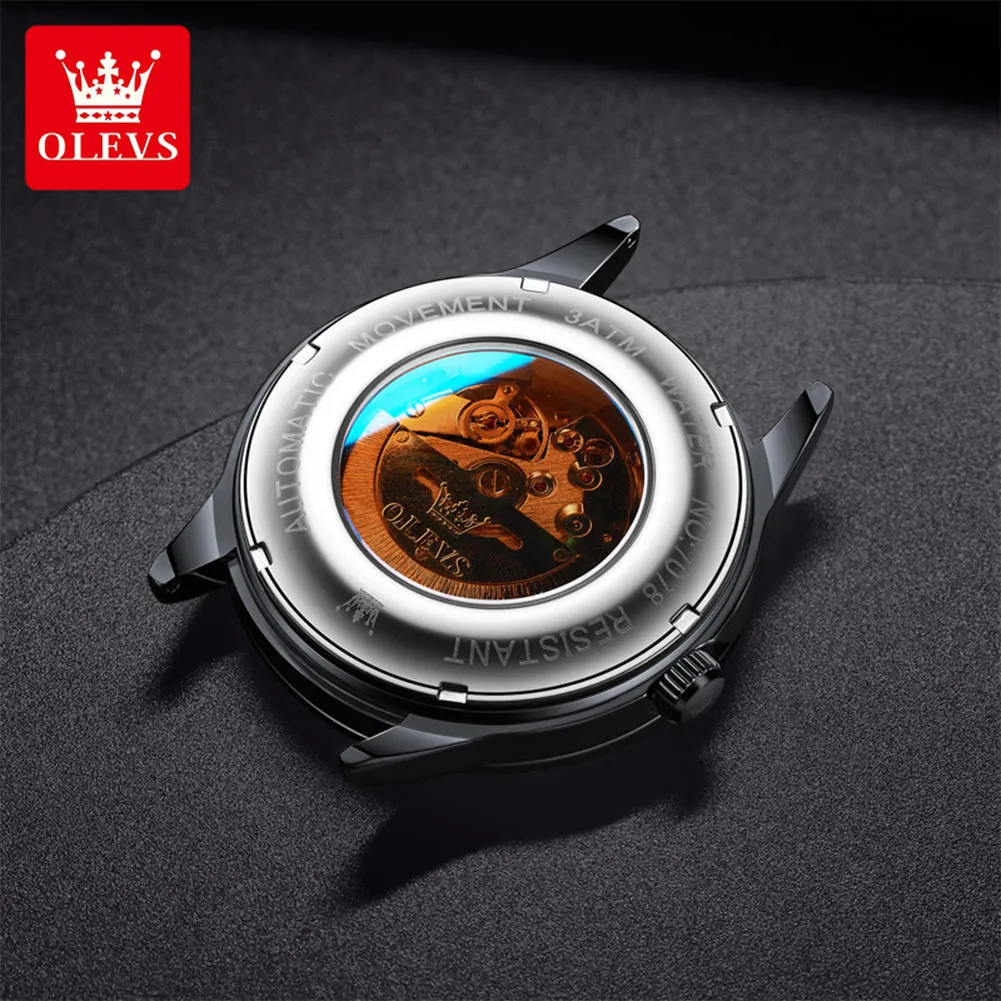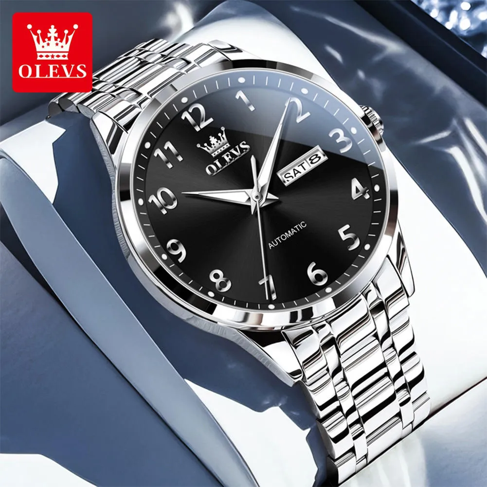 OLEVS 7078 Luminous Men Wristwatch Stainless Steel Strap Automatic Mechanical Watches Waterproof Analog Watch for Men.