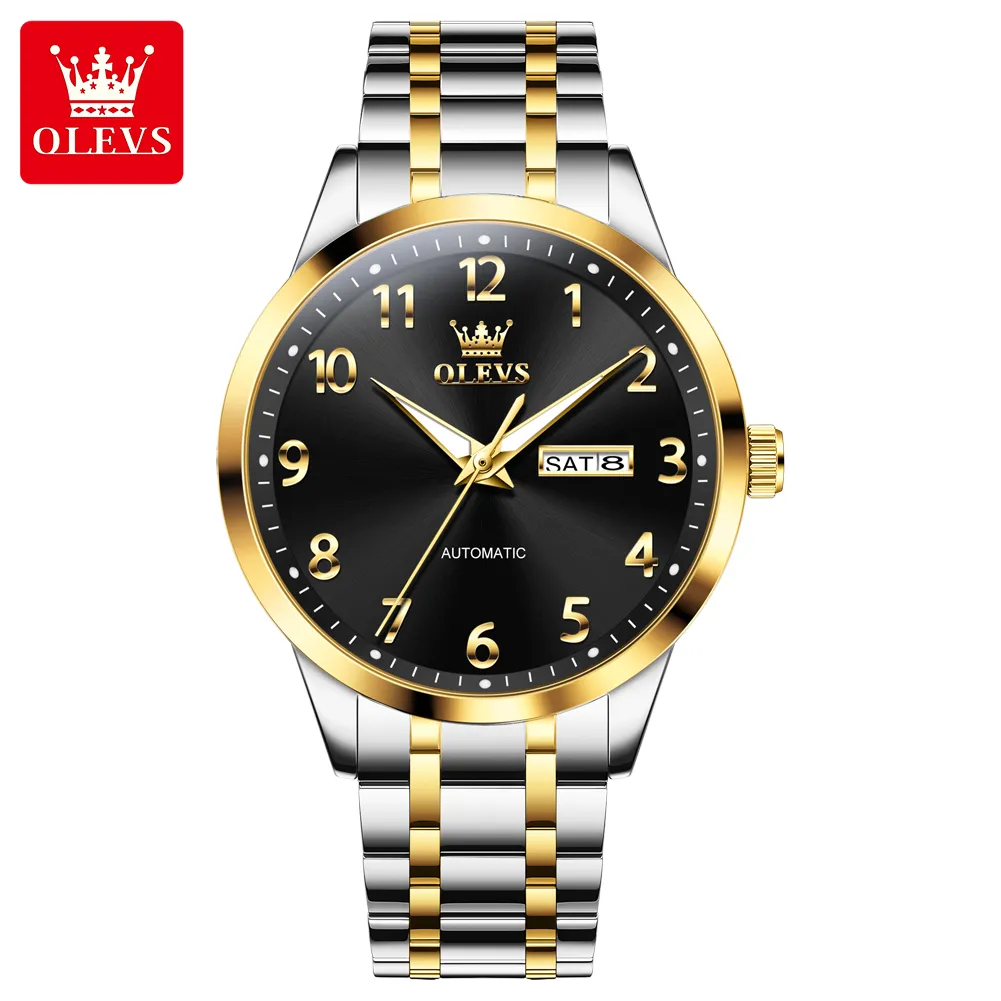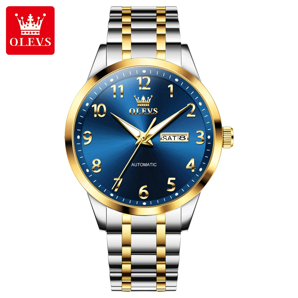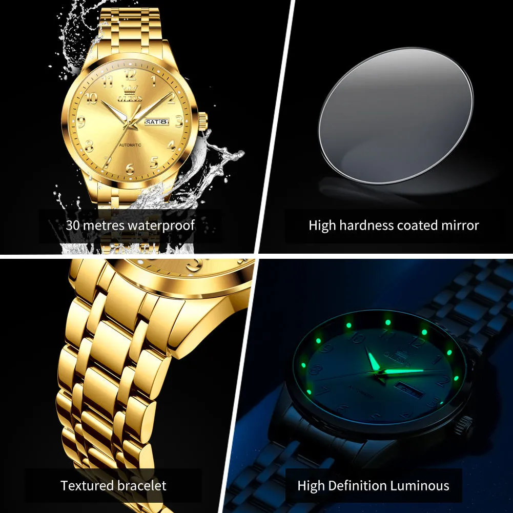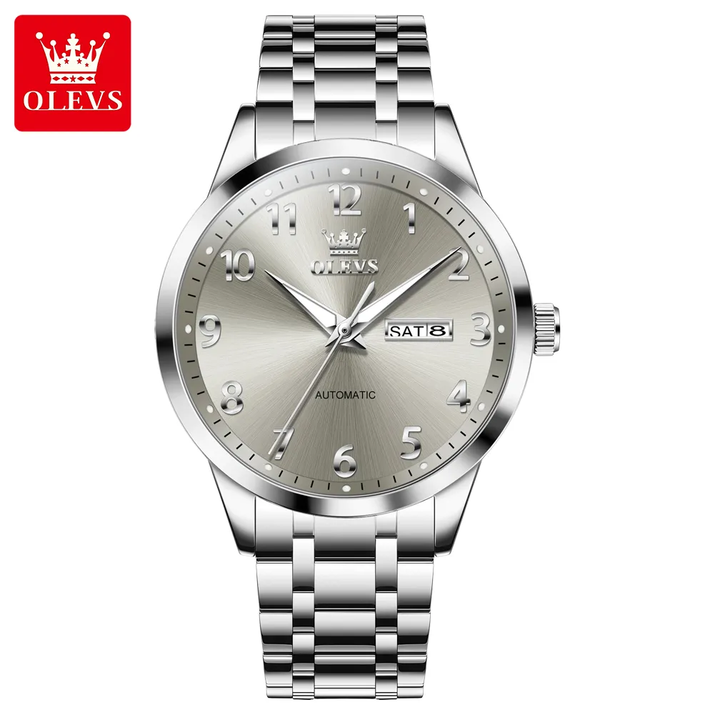 OLEVS 7078 Luminous Men Wristwatch Stainless Steel Strap Automatic Mechanical Watches Waterproof Analog Watch for Men.