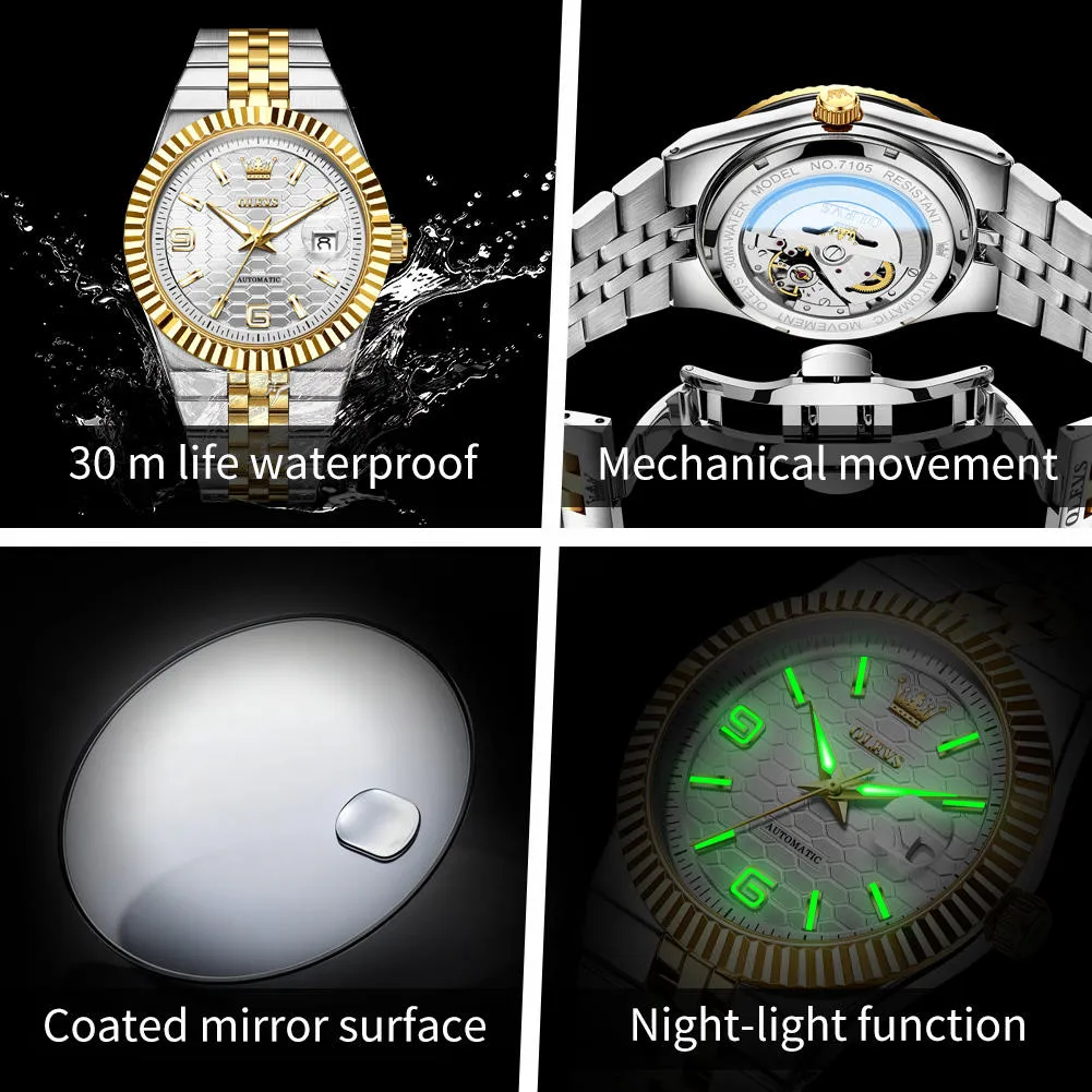 OLEVS 7105 Luxury Man Watch Top Brand Original Automatic Mechanical Watches for Men Auto Date Waterproof Luminous Men’s Watches.