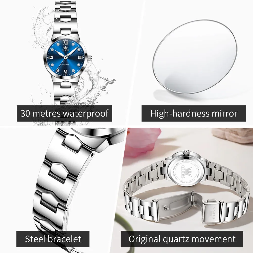 OLEVS 3735 Ladies’ Watch Automatic Date Diamond Dial Stainless Steel Waterproof Elegant Quartz Watch Ladies.