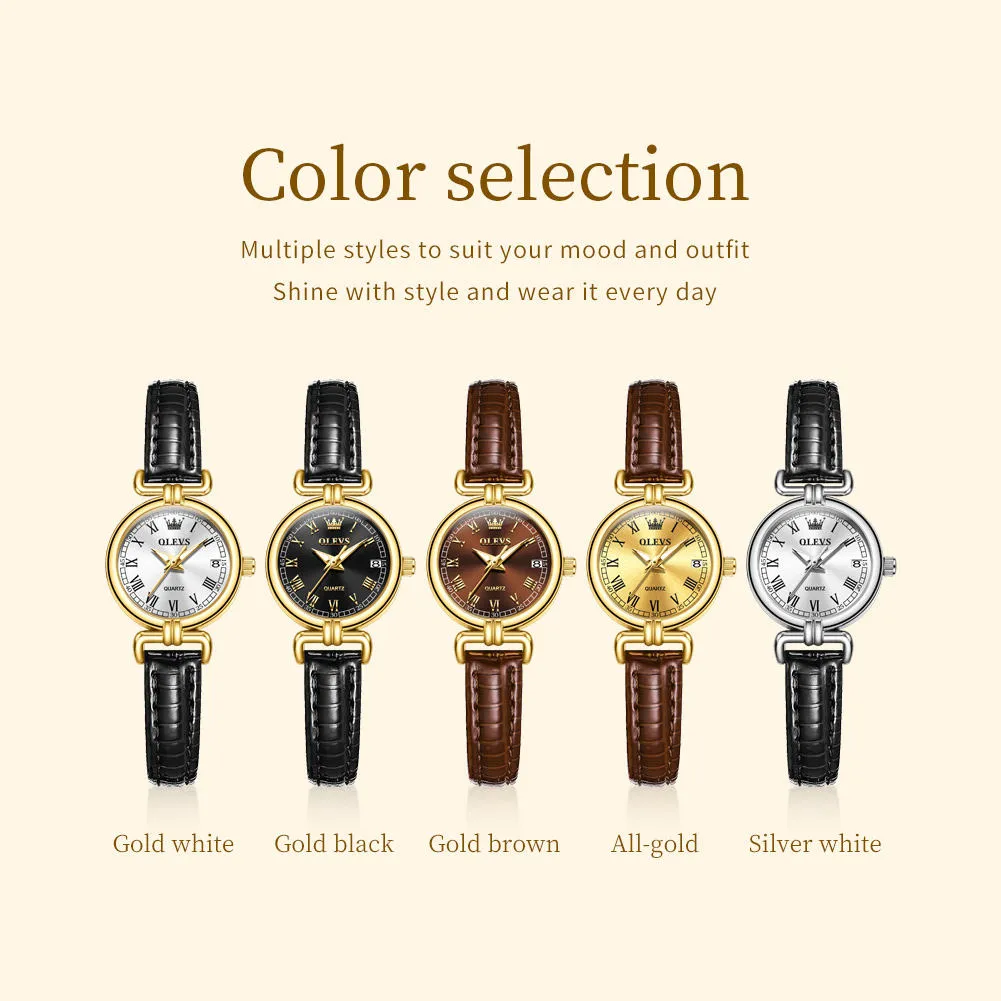 OLEVS 5645 Quartz Watches for Women Waterproof Luxury Gifts for Girl Women Retro Round Watch.