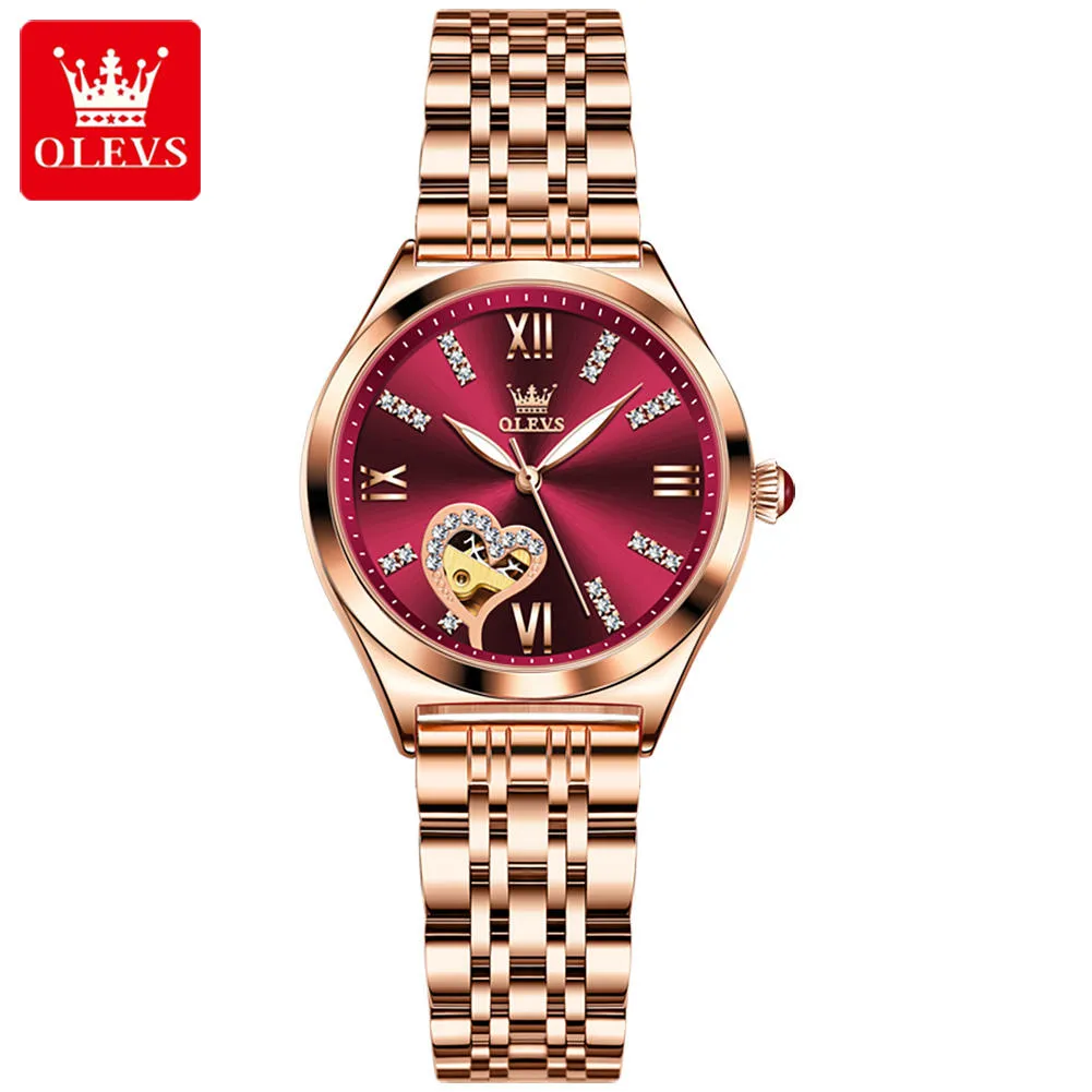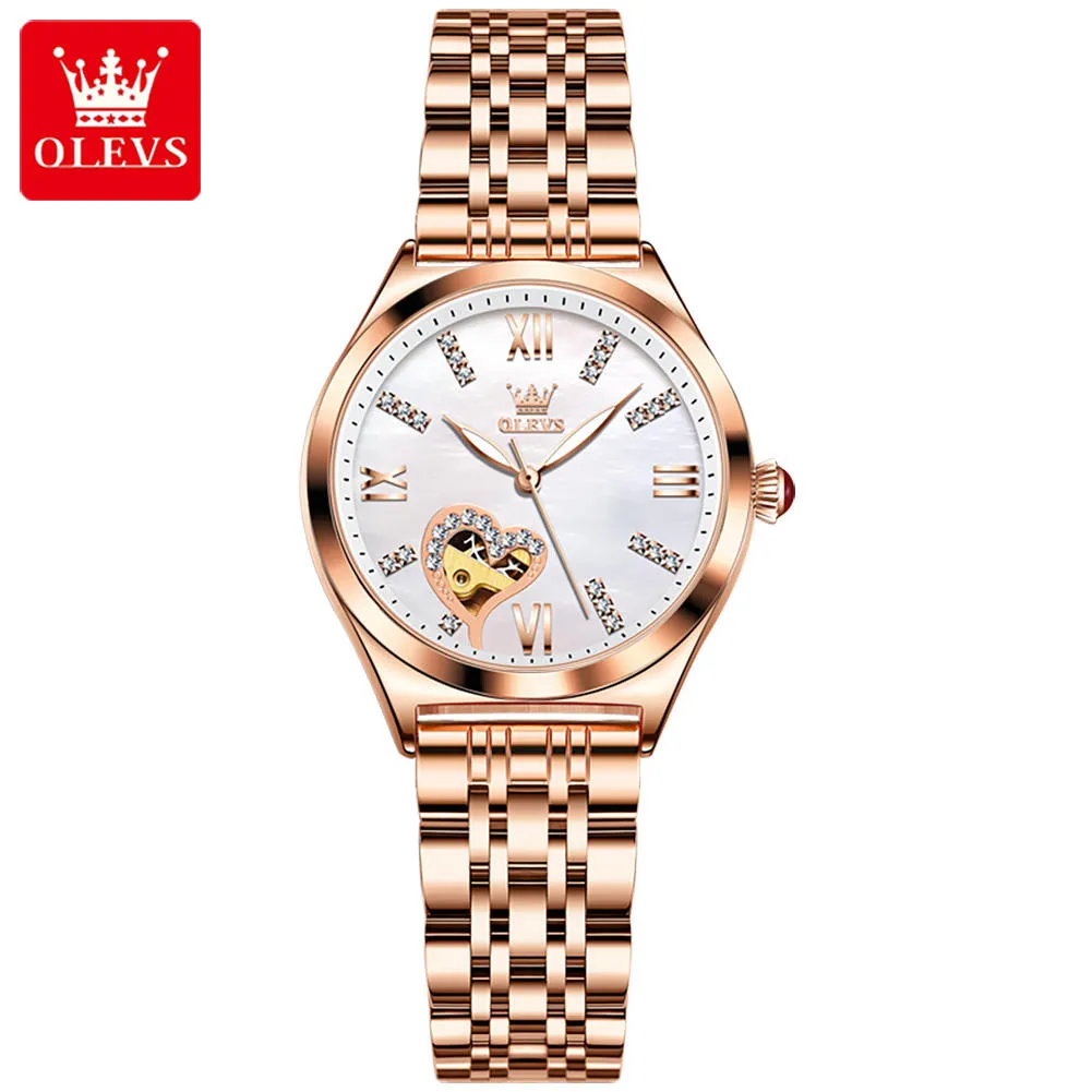 OLEVS 6636 Genuine Leather Strap Watches For Women Waterproof Automatic Mechanical Fashion Women Wristwatches.