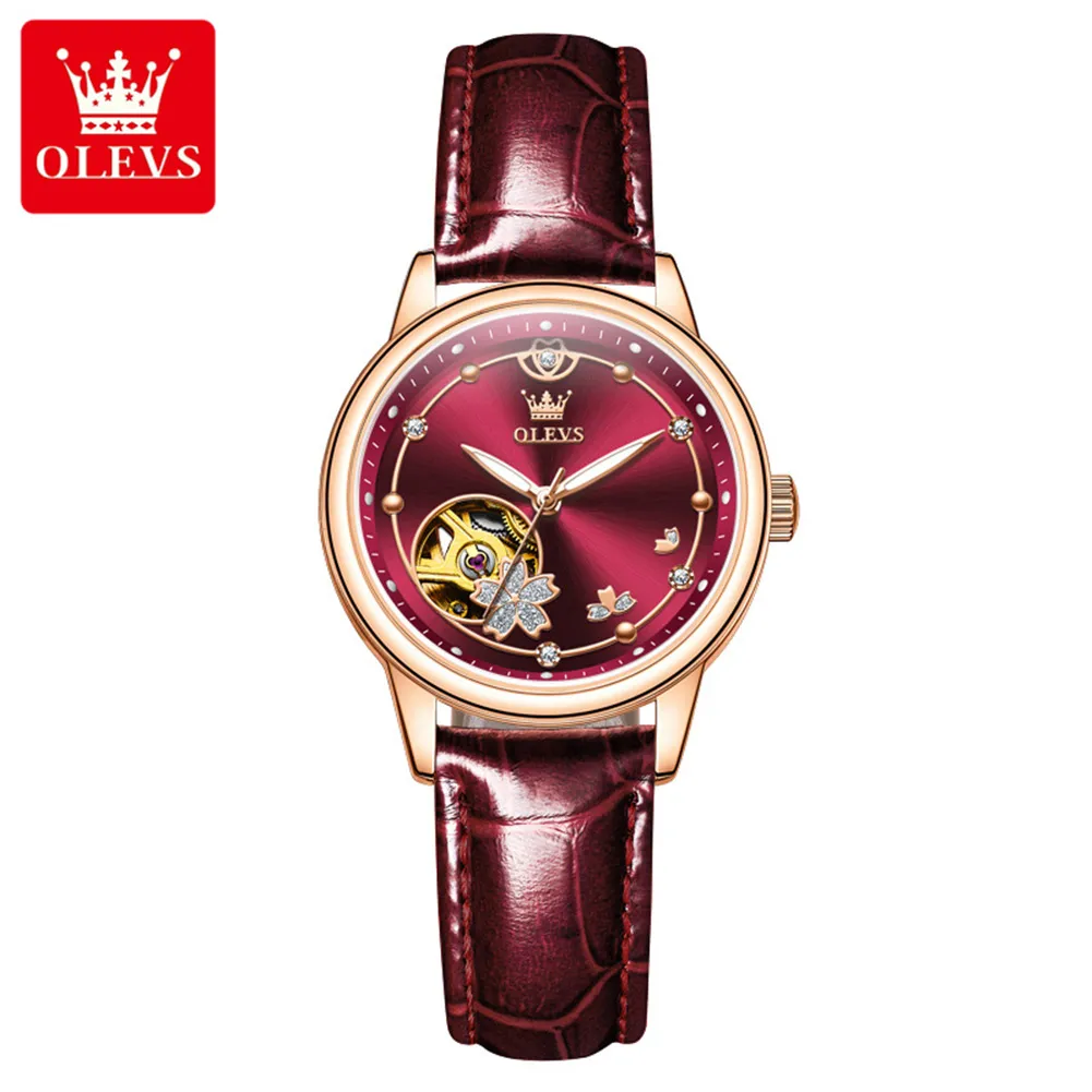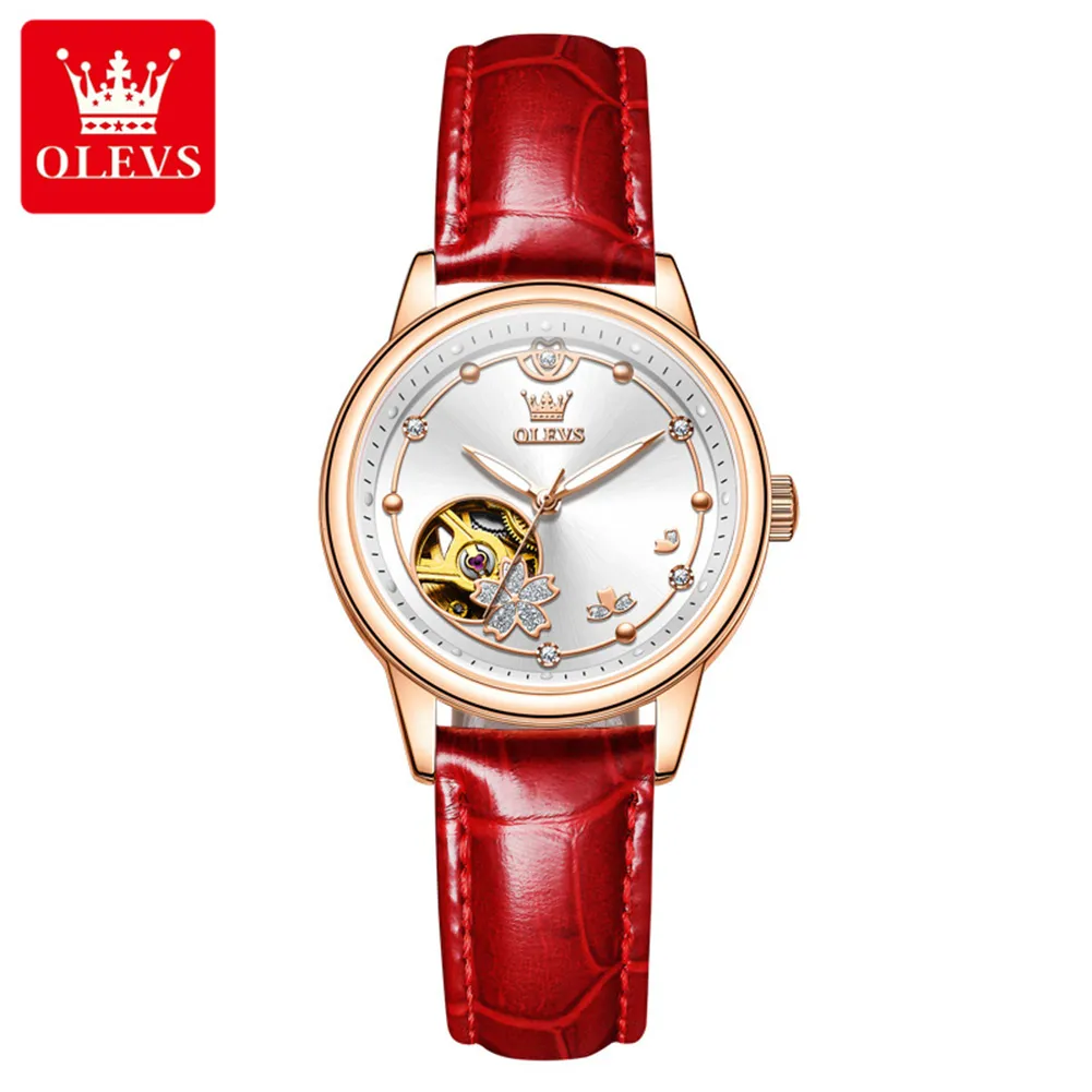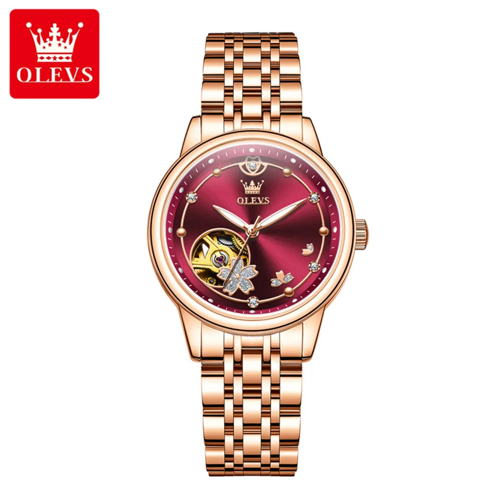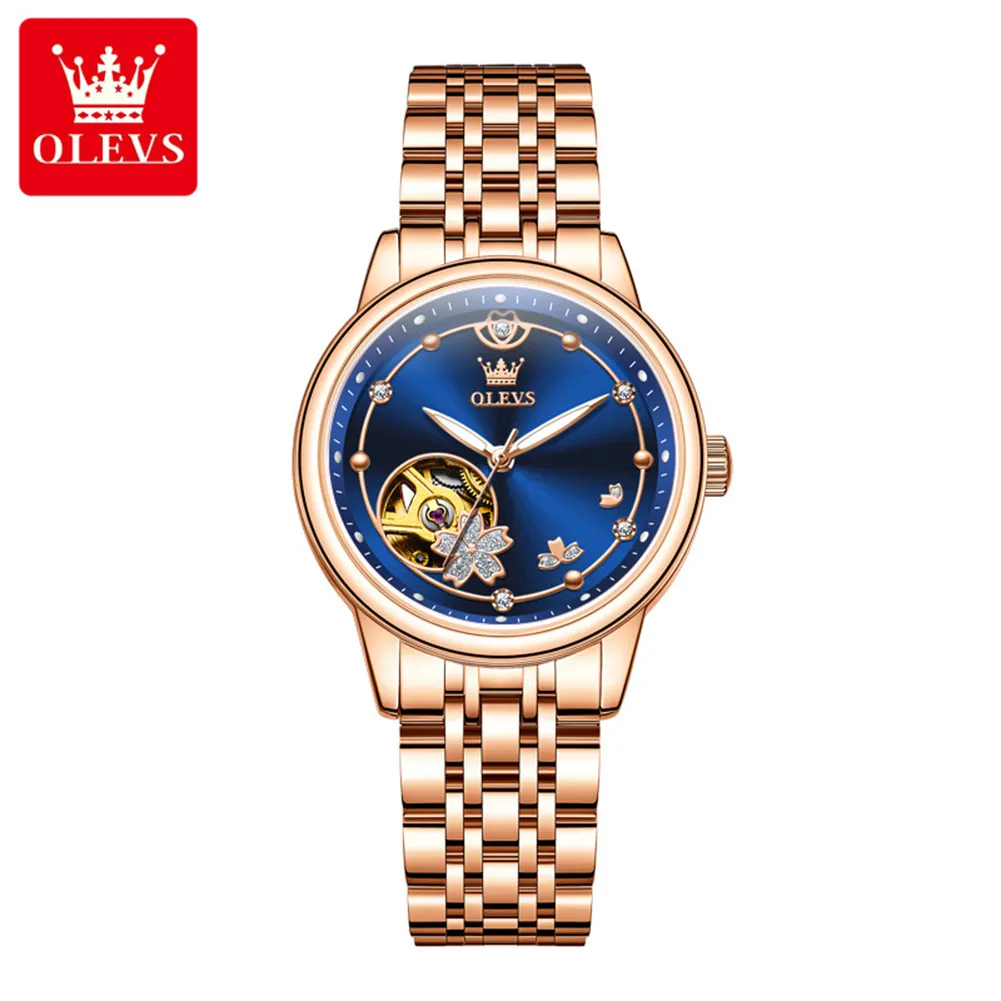 OLEVS 6732 Women Watch Top Luxury Brand All Automatic Mechanical Watch Hollow Diamond Exquisite Dial Dress Bracelet Women Watch.