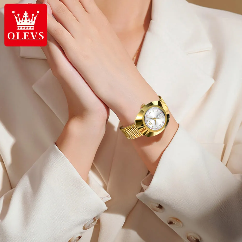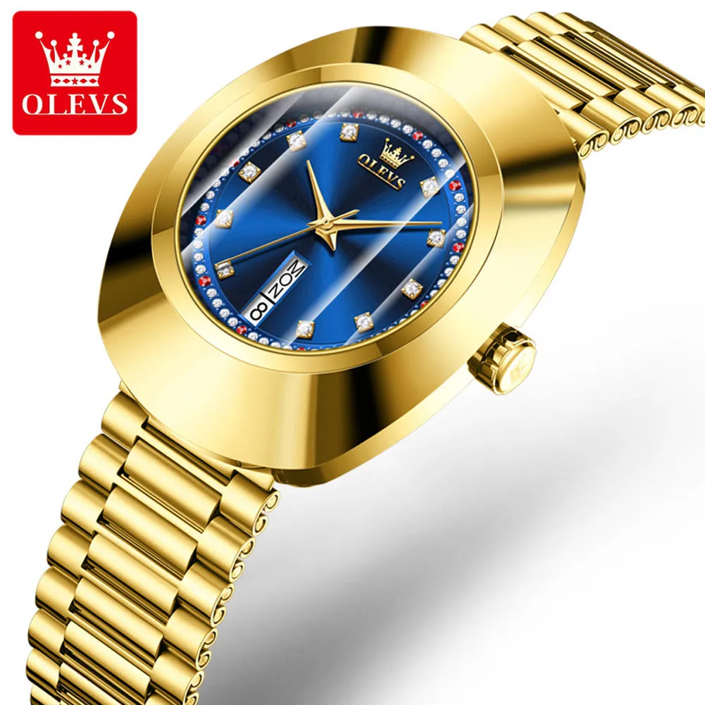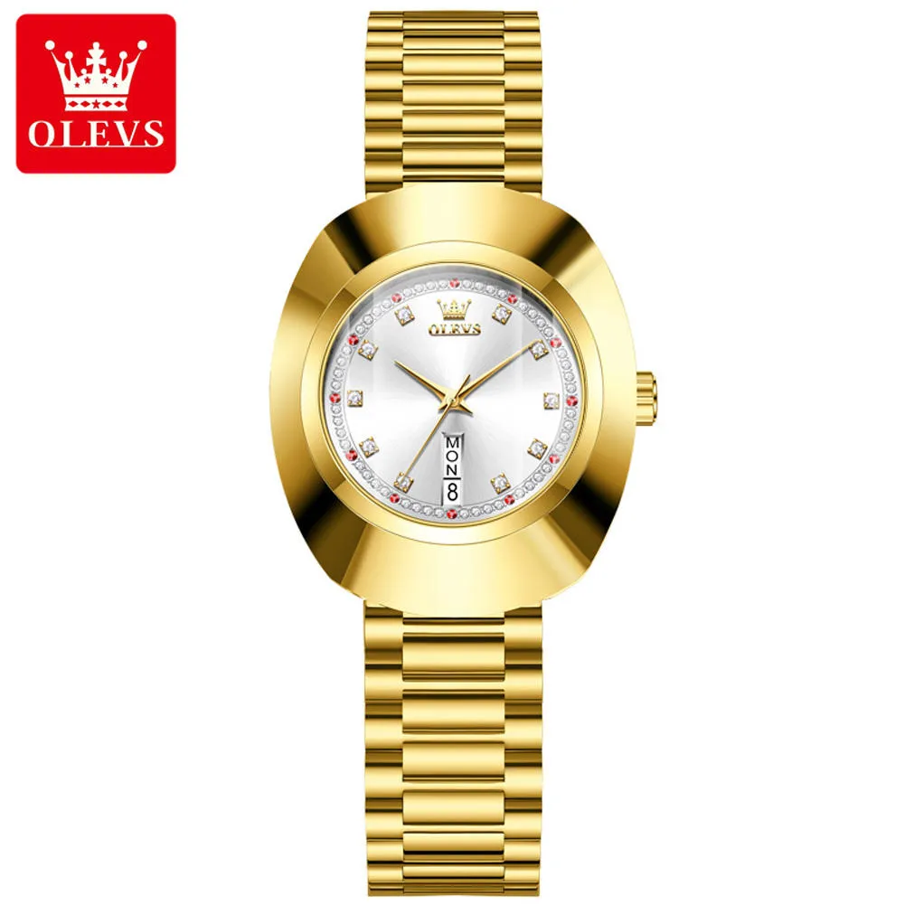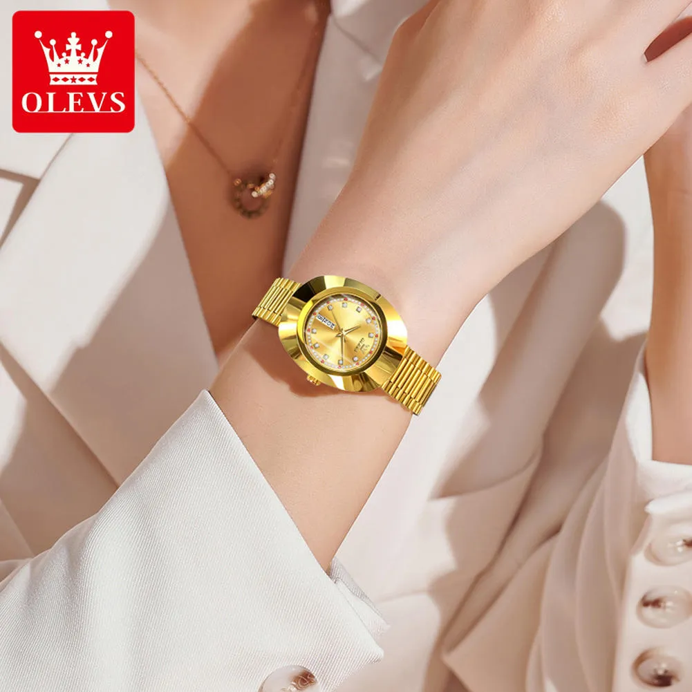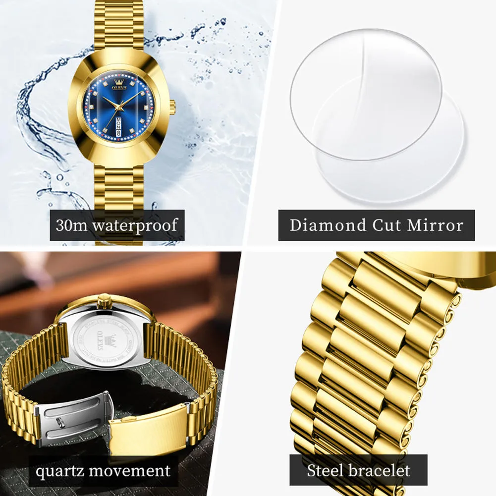 OLEVS 7017 Women Watch Luxury All Gold Quartz Watch Rhombus Mirror Calendar Waterproof Watch Brand Elegant Diamond Women Watch.
