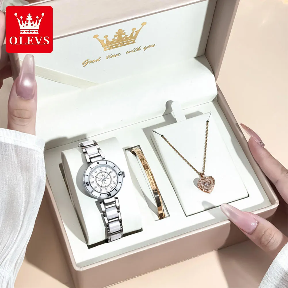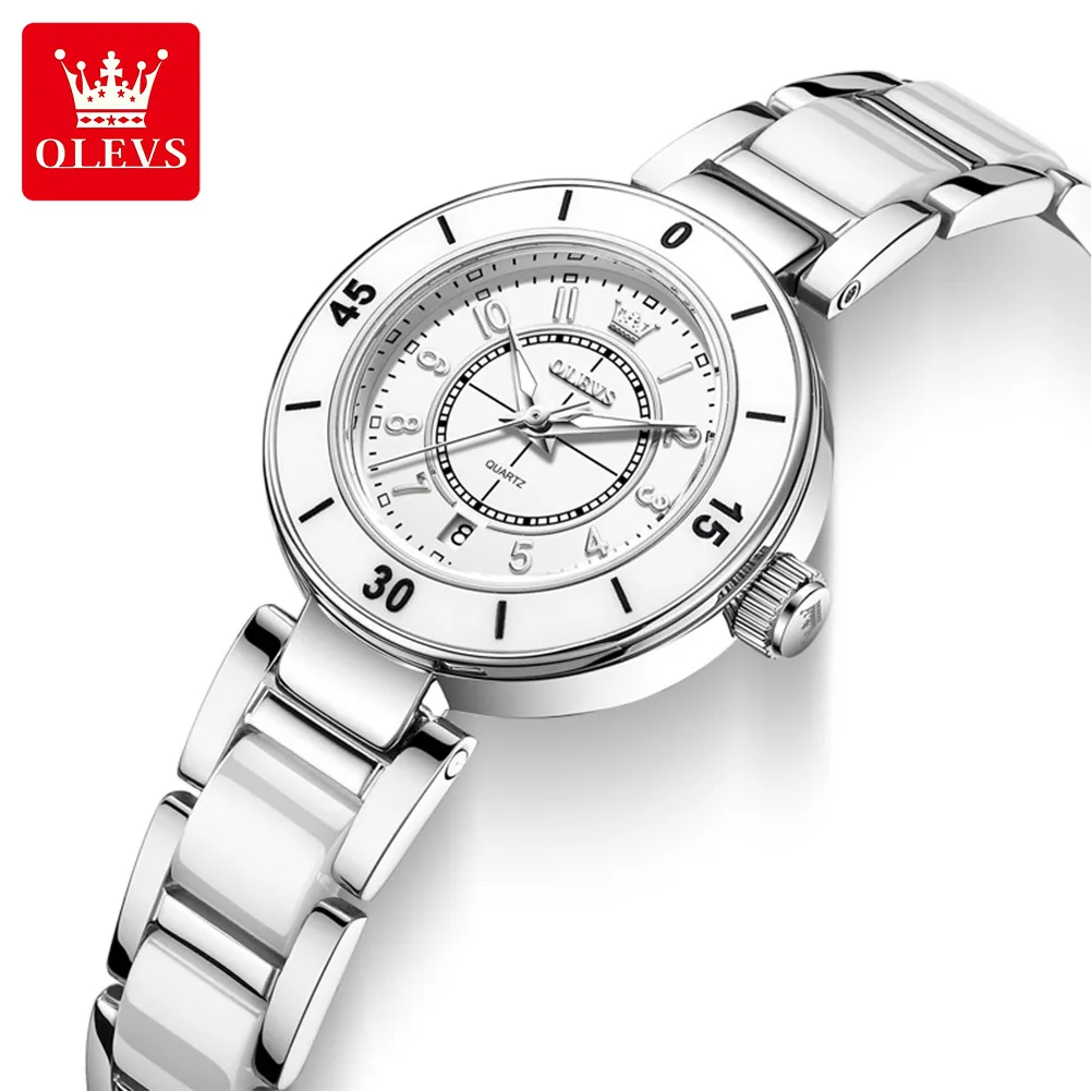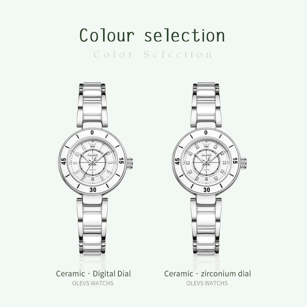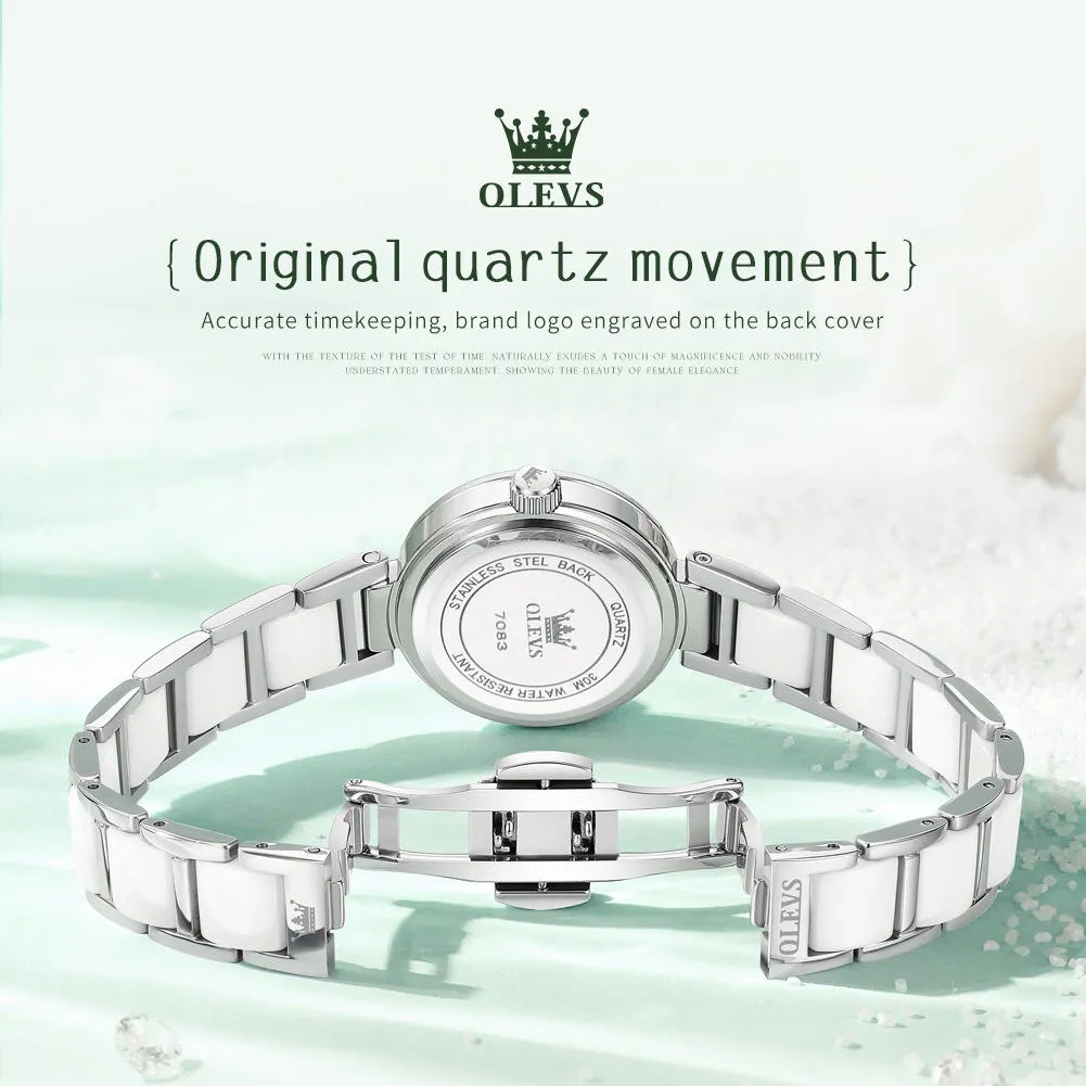 OLEVS 7083 New Women’s Quartz Watches Elegant White Ceramic Strap Diamond scale Fashion Simple Ladies Dress Wrist Watches Gifts.